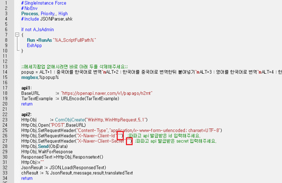 HttpObj.SetRequestHeader("파파고 api 발급받은 secret 입력해주세요")